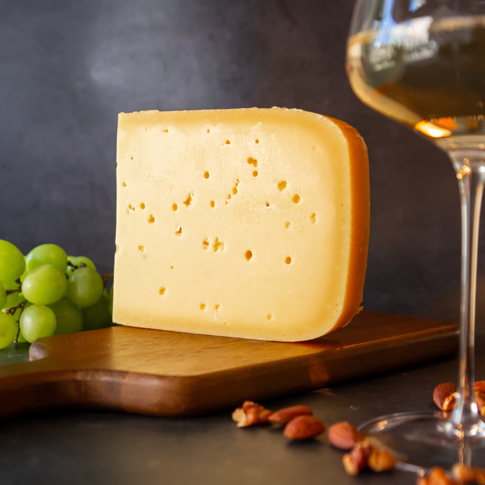 Elaborado com leite pasteurizado de vaca e maturado por 6 meses, ele apresenta uma textura firme, olhaduras bem distribuídas e cristais de tirosina — sinal da cura lenta e cuidadosa.