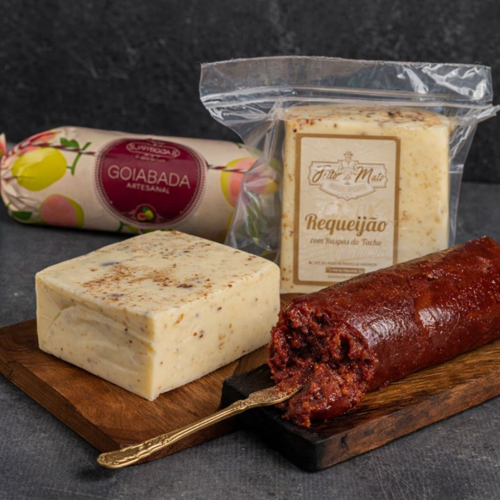 Uma combinação que atravessa gerações e nunca sai de moda. Este kit reúne o Requeijão de Corte com Raspas, macio, cremoso e com delicadas notas tostadas, com a tradicional Goiabada Artesanal Jatiboca, feita lentamente em tachos de cobre desde 1900 pela família Soares Martins, em Urucânia – MG.
